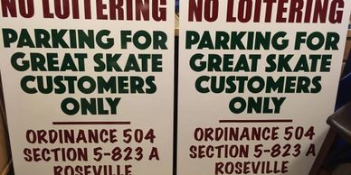 Custom order, very fun to do. This pair of signs were made for Great Skate, and while this jobs aren't frequent, we got it done. Great people from Roseville, MI.
